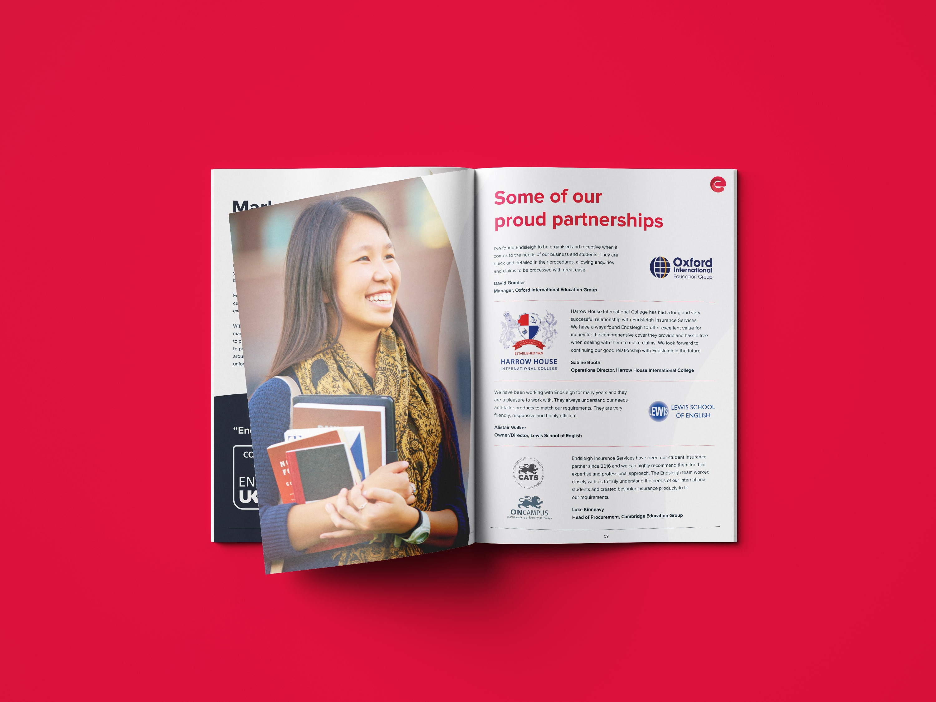 Endsleigh is the UK’s leading student insurance specialist, trusted by universities and accommodation providers nationwide. The remit was ongoing brand activation: clear, practical collateral that meets students where they are. Work has spanned flyers and brochures across product lines, plus event and exhibition materials including stands, pop-up banners, and merch - built to be straightforward, recognisable, and easy to deploy at scale.